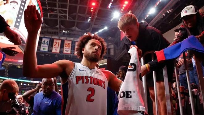 虽然29.9%的三分命中率和3.9次失误仍有瑕疵,但他在关键时刻的统治力足以掩盖缺点——15场关键时刻比赛轰下79分,总得分和助攻均列联盟第二,53.3%的投篮命中率让他成为活塞的“绝境救星”。对阵雄鹿的比赛中,他末节独得14分,用一记压哨跳投绝杀字母哥的球队,用实力完成“王位交替”。