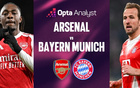 数据占优,拜仁对阿森纳5场不败,14次交手赢下8场